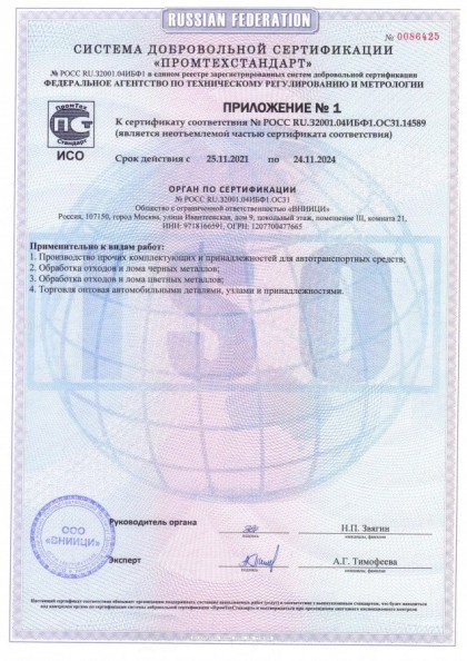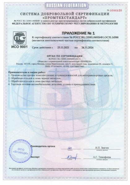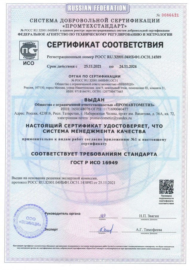 На каждую партию предоставляется сертификат, паспорт качества с указанием характеристик и другой технической информации.