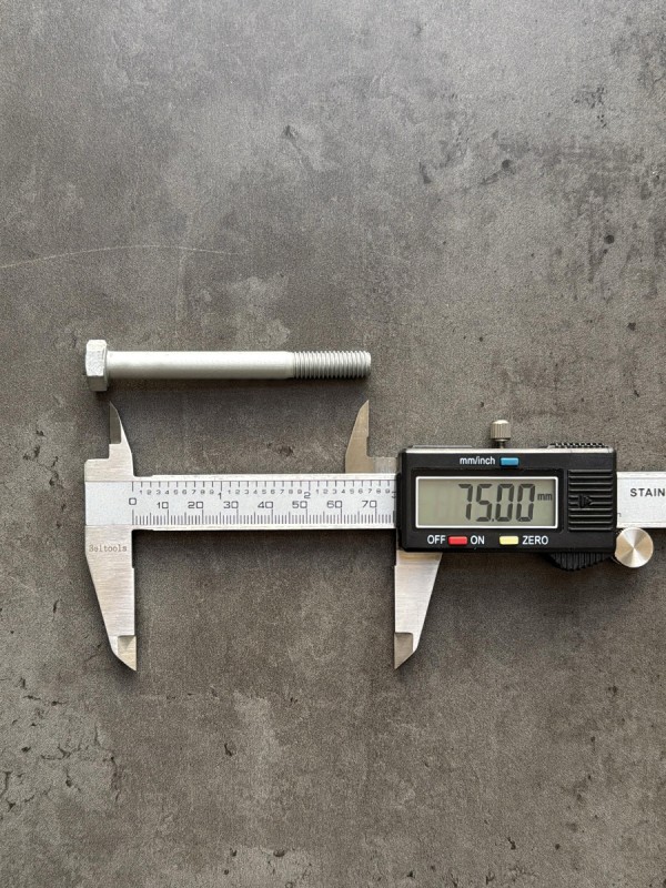 Болт с шестигранной головкой, высокопрочный, мелкий шагом резьбы. Стандарт: таблица FIAT-ВАЗ 10312. Диаметр резьбы: 12 мм. Шаг резьбы: 1,25 (мелкий). Длина болта: 25 мм. Длина резьбы: 25 мм. Размер "под ключ": 19 мм. Класс прочности: 10.9. Покрытие: цинк-ламель. В соответствии со стандартами, длина болта измеряется от опорной части головки до конца фаски, которой завершается его резьбовой стержень.