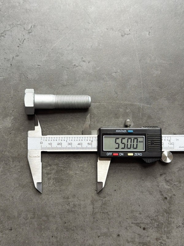 Болт с шестигранной головкой, высокопрочный, мелкий шагом резьбы. Стандарт: таблица FIAT-ВАЗ 10312. Диаметр резьбы: 12 мм. Шаг резьбы: 1,25 (мелкий). Длина болта: 25 мм. Длина резьбы: 25 мм. Размер "под ключ": 19 мм. Класс прочности: 10.9. Покрытие: цинк-ламель. В соответствии со стандартами, длина болта измеряется от опорной части головки до конца фаски, которой завершается его резьбовой стержень.