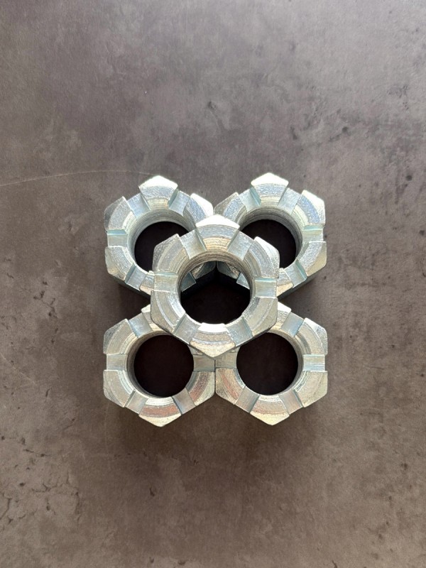 Гайка корончатая М30х1,5 (h=27, S-46) М30.х1.5.6Н.27.46, Класс прочности: 6, Шаг резьбы: 1,5 мм, Покрытие: Цинк, Диаметр: 30 мм. М30.х1.5.6Н.27.46