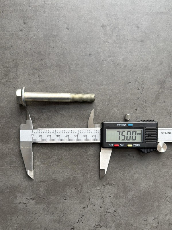 Болт фланцевый без насечек, высокопрочный, мелкий шаг резьбы. Болт российского производства. Применяемость: болт многофункциональный, изготовлен на автомобиль Камаз. Стандарт: DIN 6921. Можно использовать, как аналог ГОСТ ISO 4162-2014. Длина болта: 75 мм. Длина резьбы: 26 мм. Диаметр резьбы: 10 мм. Шаг резьбы: 1,25. Размер "под ключ": 15 мм. Класс прочности: 8.8. Покрытие: цинк-ламель. В соответствии со стандартами, длина болта измеряется от опорной части головки до конца фаски, которой завершается его резьбовой стержень.