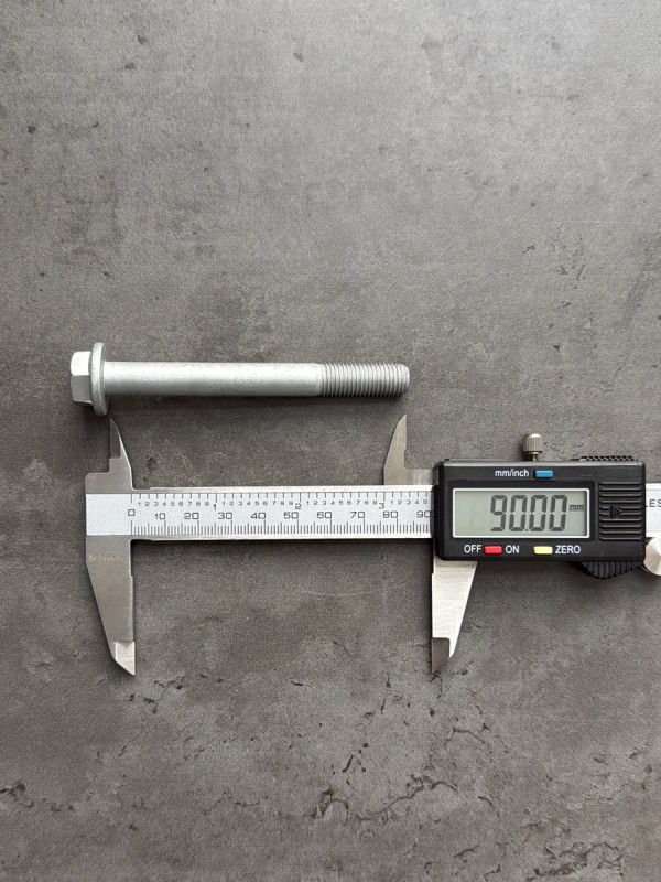Болт фланцевый без насечек, высокопрочный, мелкий шаг резьбы. Болт российского производства. Применяемость: болт рамный 21-130-12-90-88 изготовлен на автомобиль Камаз. Стандарт: DIN 6921. Длина болта: 90 мм. Длина резьбы: 30 мм. Диаметр резьбы: 12 мм. Шаг резьбы: 1,25. Размер "под ключ": 16 мм. Класс прочности: 8.8. Покрытие: цинк-ламель. В соответствии со стандартами, длина болта измеряется от опорной части головки до конца фаски, которой завершается его резьбовой стержень.