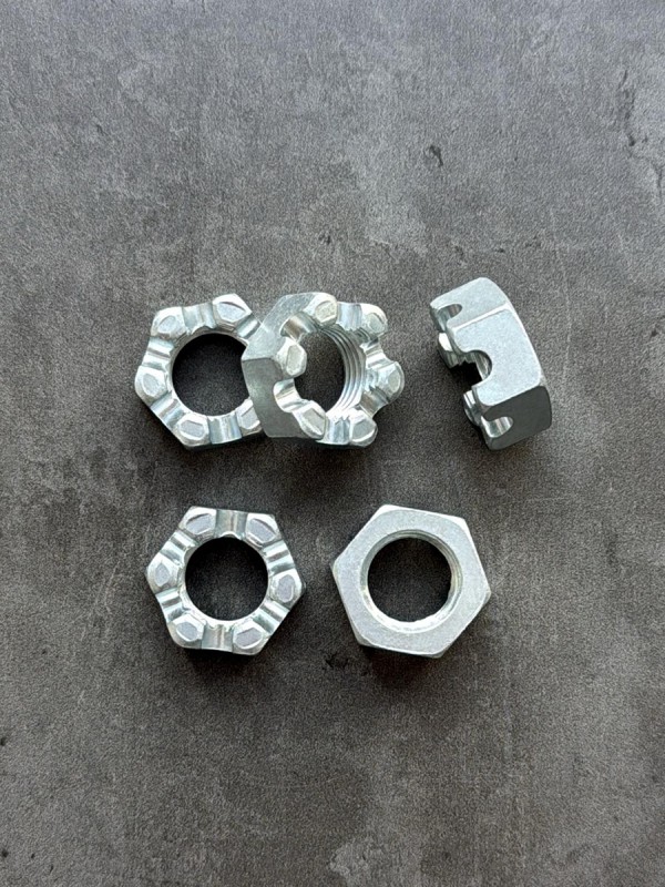 Купить Гайка корончатая, прорезная низкая М18х1,5 ГОСТ 5919-73, покрытие цинк вы можете в компании Магазин "Промавтометиз", оформив заказ в интернет магазине, или